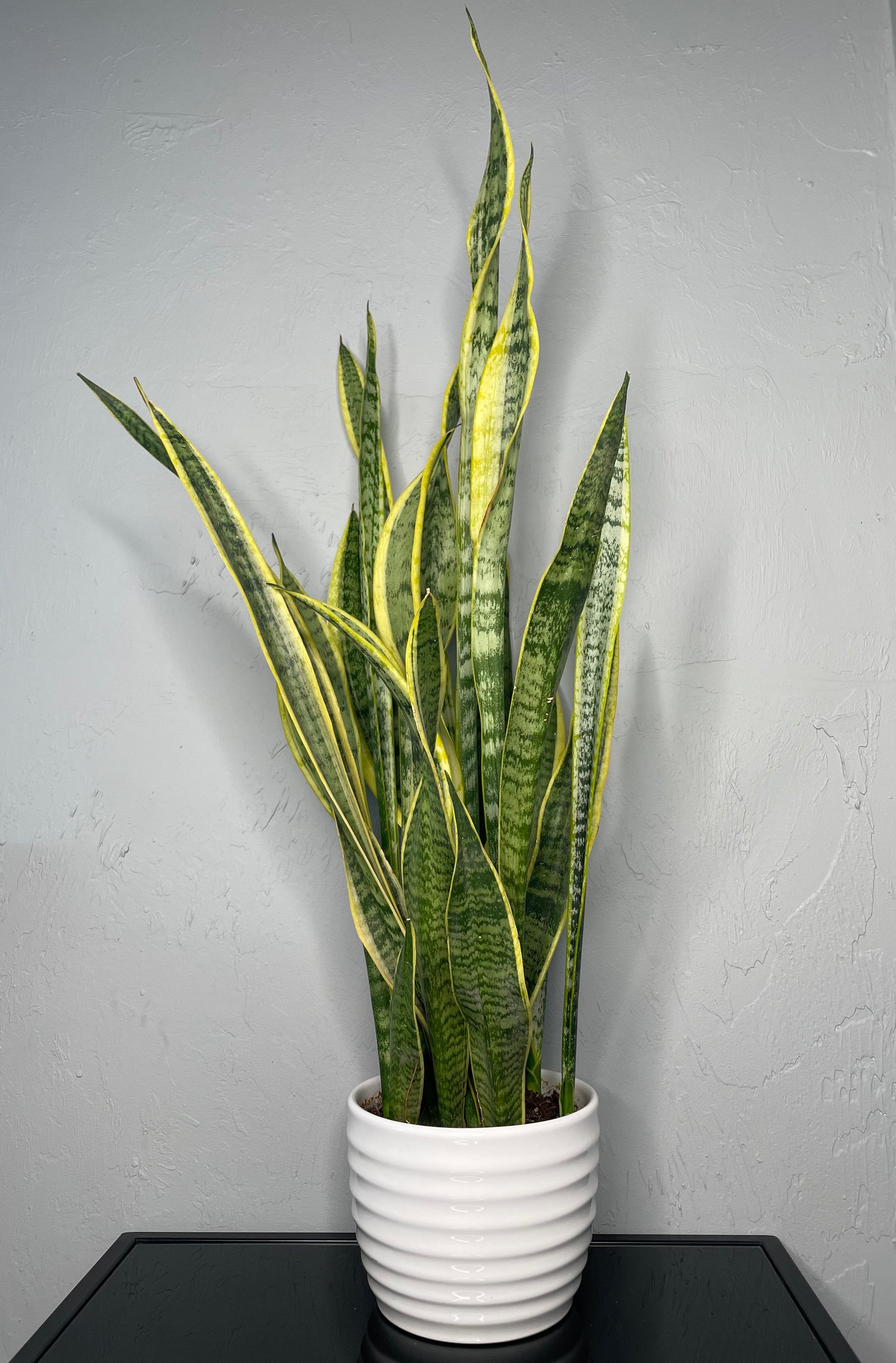 The Snake Plant Laurentii is a succulent plant characterized by its upright sword-like leaves with vibrant yellow edges. It is popular for its incredibly easy-going nature (it can tolerate low light and drought) and its air-purifying capabilities. The easiest way to kill this plant is to overcare for it.